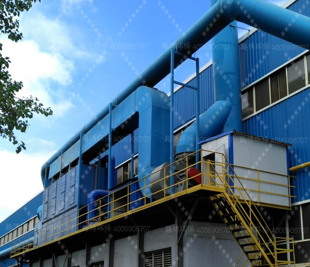 預(yù)處理生產(chǎn)線五臺機(jī)器共用一套廢氣處理系統(tǒng),采用兩級過濾+活性炭吸附+催化燃燒脫附工藝,合計總處置風(fēng)量為6萬m3/h;