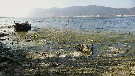 富營養(yǎng)化是指因水體中N、P等植物必需的礦質(zhì)元素含量過多而使水質(zhì)惡化的現(xiàn)象。水體中含有適量的N、P等礦質(zhì)元素,這是藻類植物生長發(fā)育所必需的。但是,如果這些礦質(zhì)元素大量地進(jìn)入水體,就會使藻類植物和其他浮游生物大量繁殖。這些生物死亡以后,先被需氧微生物分解,使水體中溶解氧的含量明顯減少。接著,生物遺體又會被厭氧微生物分解,產(chǎn)生出硫化氫、甲烷等有毒物質(zhì),致使魚類和其他水生生物大量死亡。發(fā)生富營養(yǎng)化的湖泊、海灣等流動(dòng)緩慢的水體,因浮游生物種類的不同而呈現(xiàn)出藍(lán)、紅、褐等顏色。富營養(yǎng)化發(fā)生在池塘和湖泊中叫做“水華”,發(fā)生在海水中叫做“赤潮”。工業(yè)廢水、生活污水和農(nóng)田排出的水中含有很多N、P等植物必需的礦質(zhì)元素,這些植物必需的礦質(zhì)元素大量地排到池塘和湖泊中,會使池塘和湖泊出現(xiàn)富營養(yǎng)化現(xiàn)象。池塘和湖泊的富營養(yǎng)化不僅影響水產(chǎn)養(yǎng)殖業(yè),而且會使水中含有亞硝酸鹽等致癌物質(zhì),嚴(yán)重地影響人畜的安全飲水。