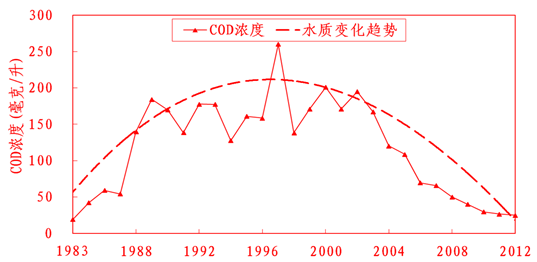 圖三?1983年-2012年全省COD、氨氮平均濃度變化趨勢圖
