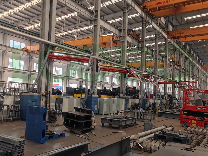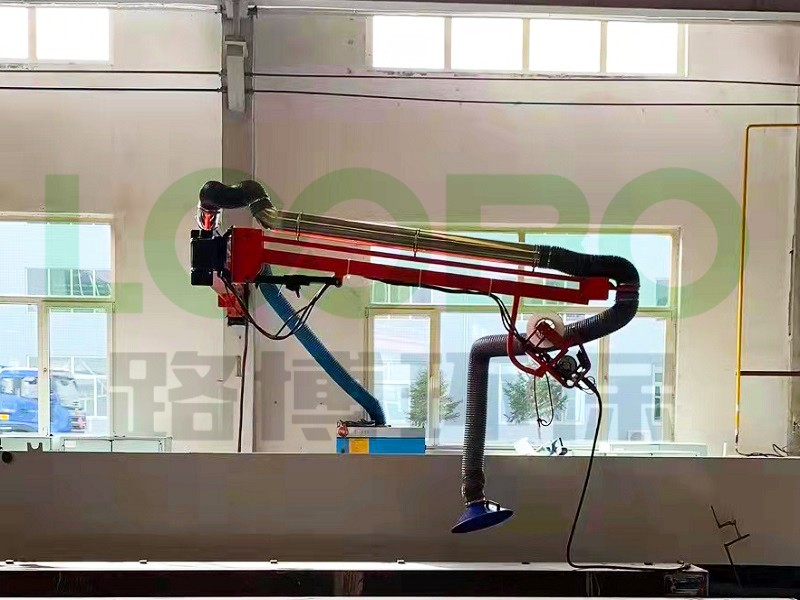 3.焊機(jī)吸氣臂一端固定于廠(chǎng)房立柱,前端搭載二氧化碳送絲機(jī),作業(yè)覆蓋面積大,臂長(zhǎng)可選2米-10米的大半徑,可在任意角度停留,為焊接除塵提供有力保障。